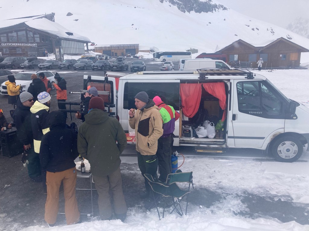 Zum Ausklang der Saison hatten wir nochmals richtig Glück. Beinahe jedes Jahr im April werden die Boarderschwaben nochmal mit Powder im Kaunertal beschenkt. Es ist nicht unbedingt das, was man sich im Frühling vorstellt, aber Powdern geht immer. Neben den traditionellen Zwiebeln gab es natürlich wieder leckere Steaks und Würste vom Grill sowie feine Limo und Bier von unserem Partner Haller Löwenbräu und der Haller Wildbadquelle.